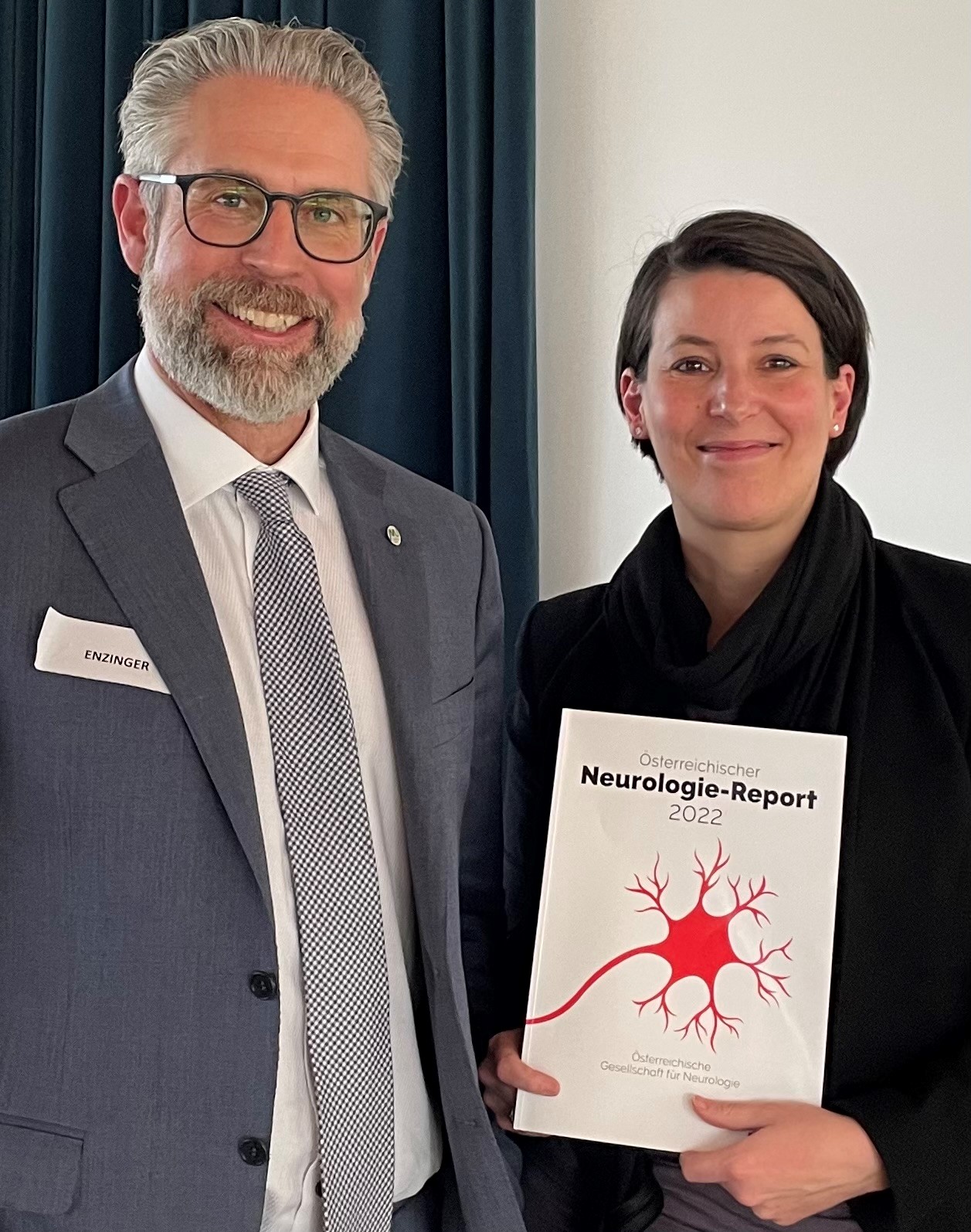 ÖGN Präsident Christian Enzinger überreicht Chief Medical Officer / Sektionschefin BMSGPK Dr.in Katharina Reich am 15.03.2023 anlässlich 10 Jahre AIQI den österreichischen Neurologie Report